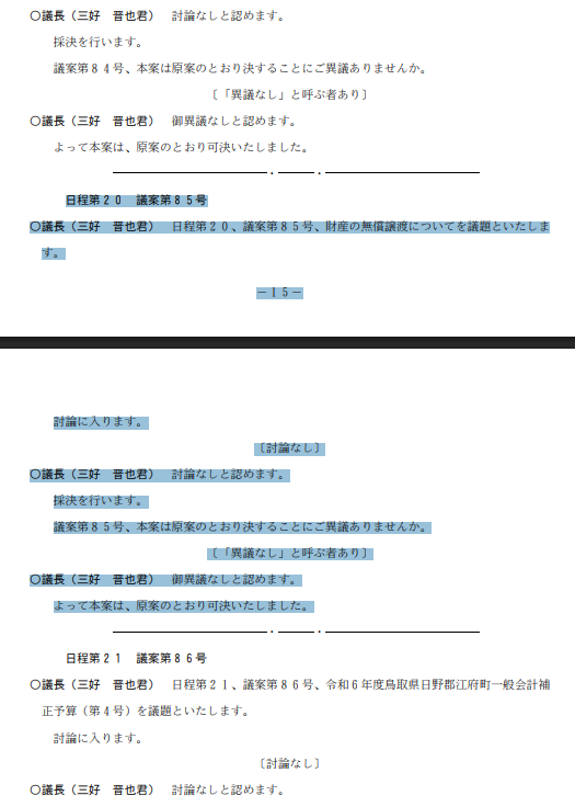 議論も確認もなく決定するなんて事はなかろう と議会事務局に問いあわせてみたところ、