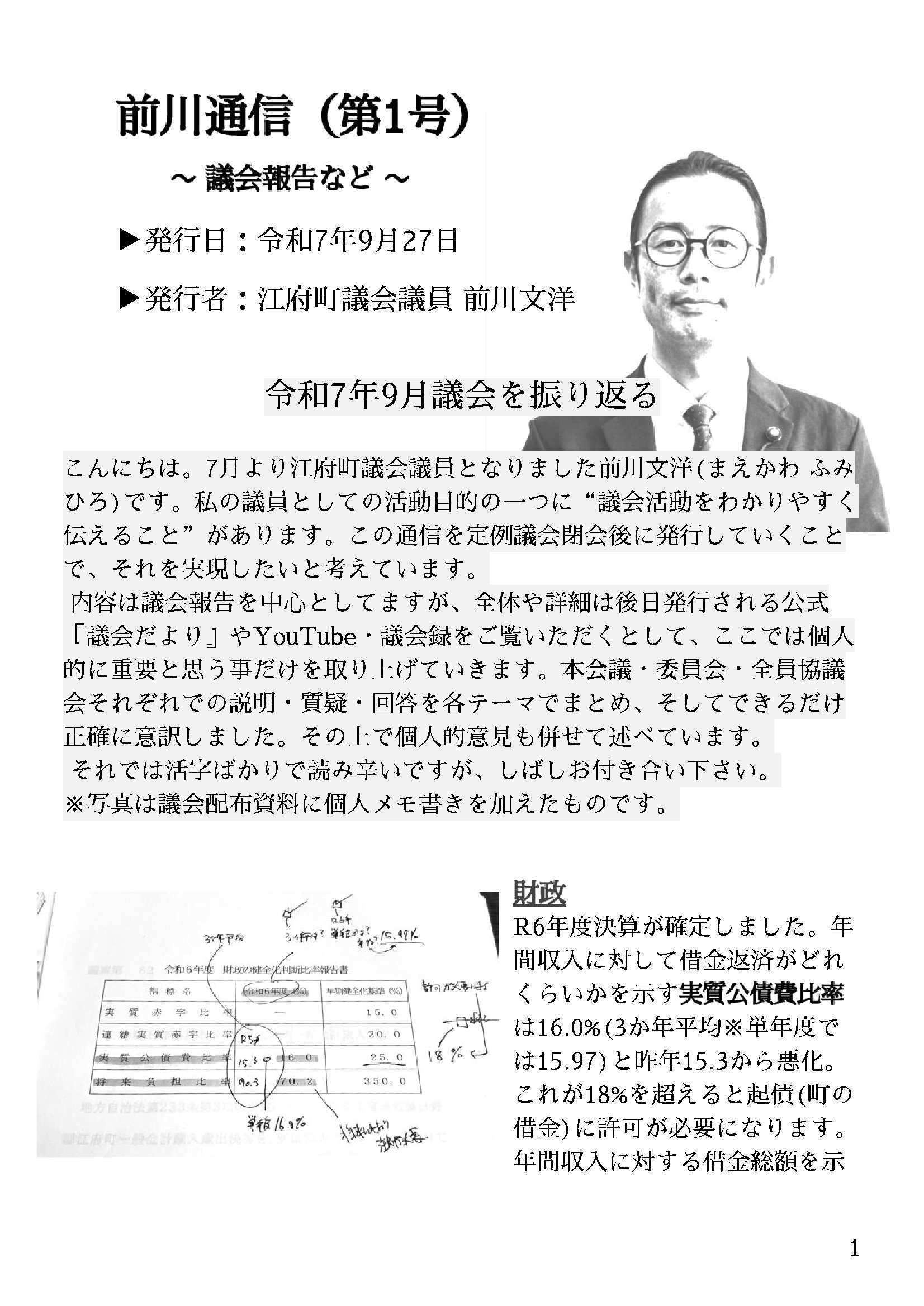 前川通信(第1号) ✒️ 公開:2025-09-27