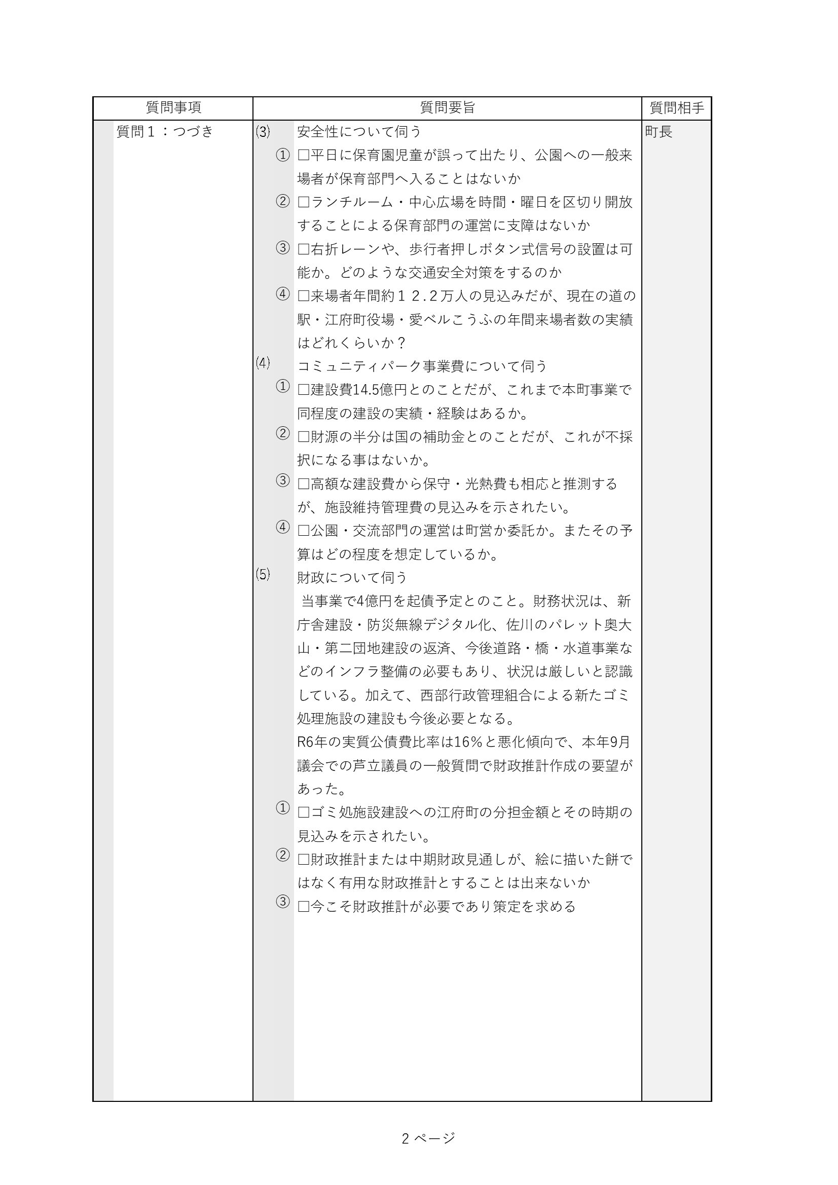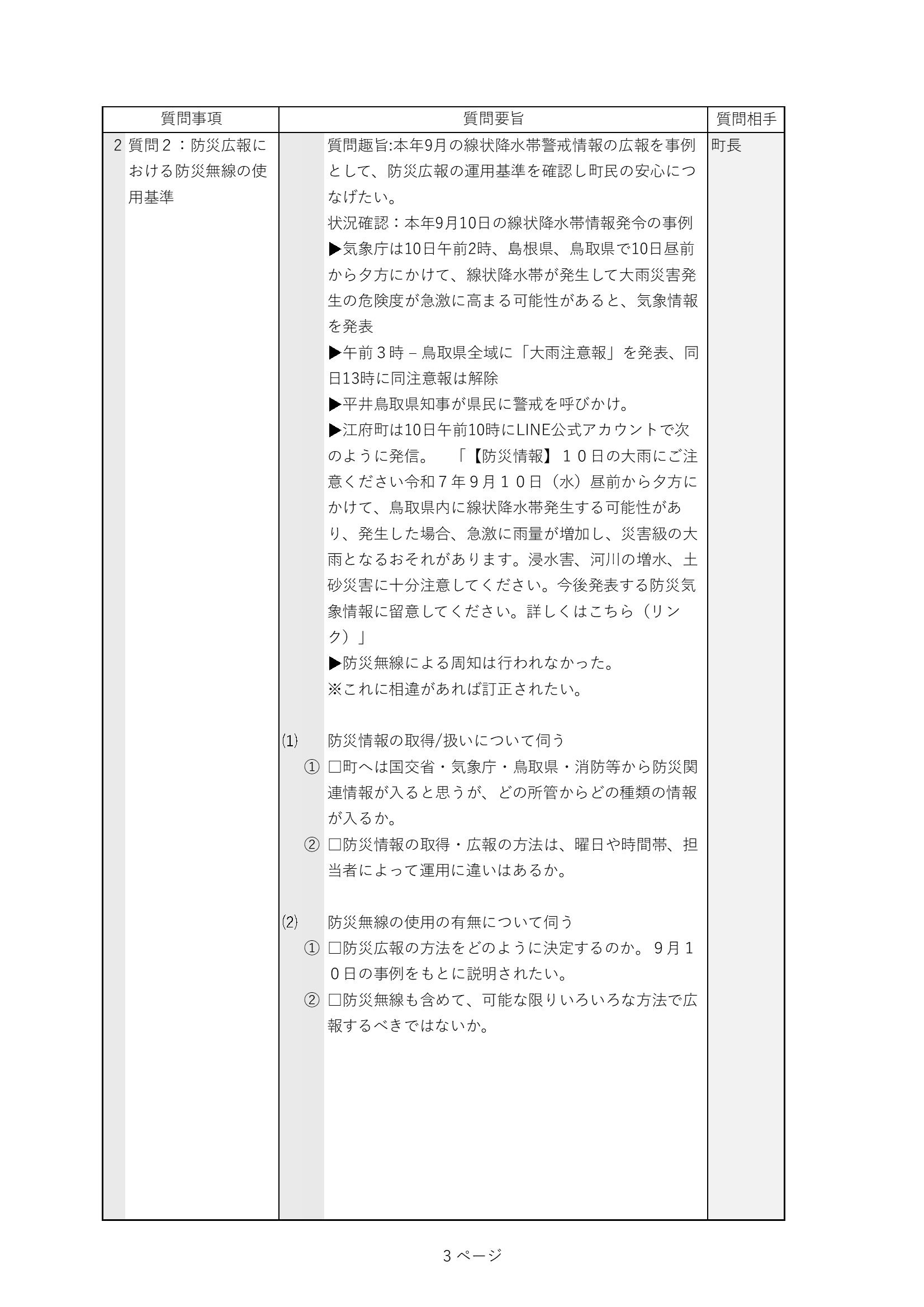 前回9月議会の反省を踏まえ、今回の通告書は趣旨や内容を詳細に伝えるようにしました。