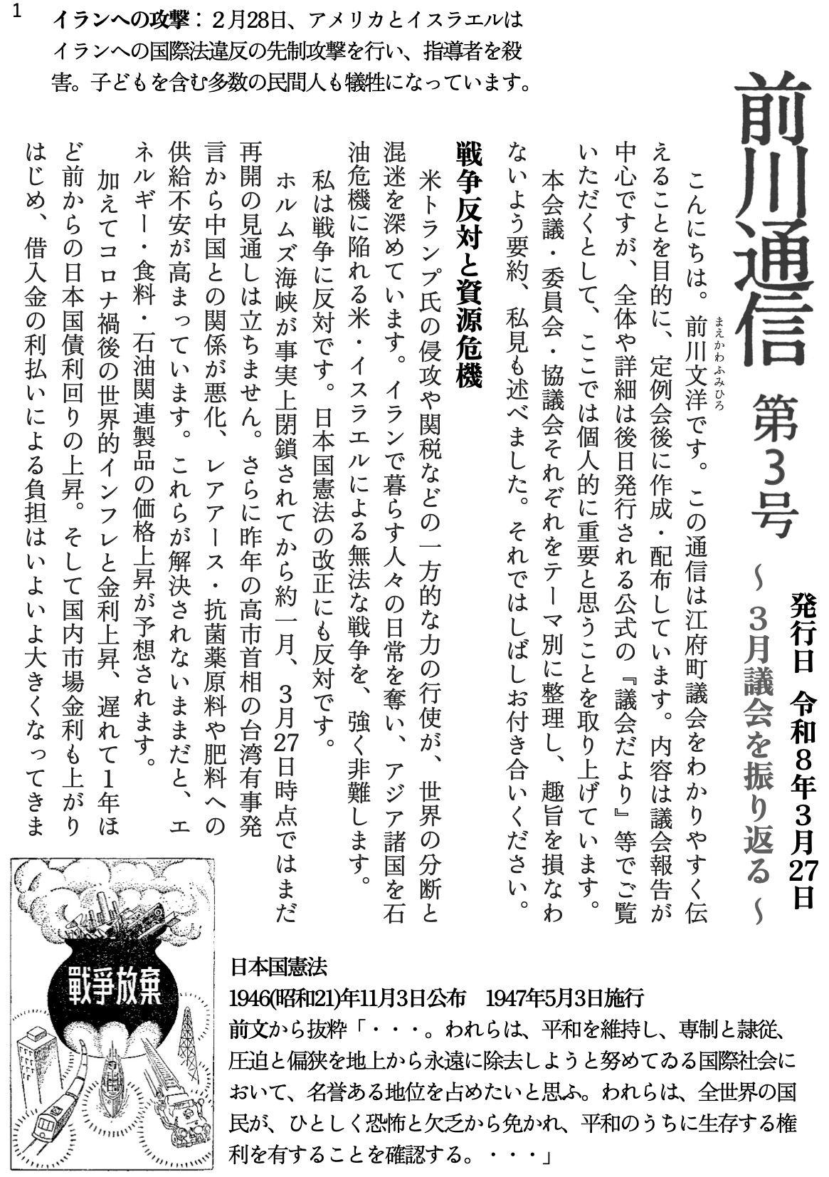 前川通信(第3号) ✒️ 公開:2026-03-27